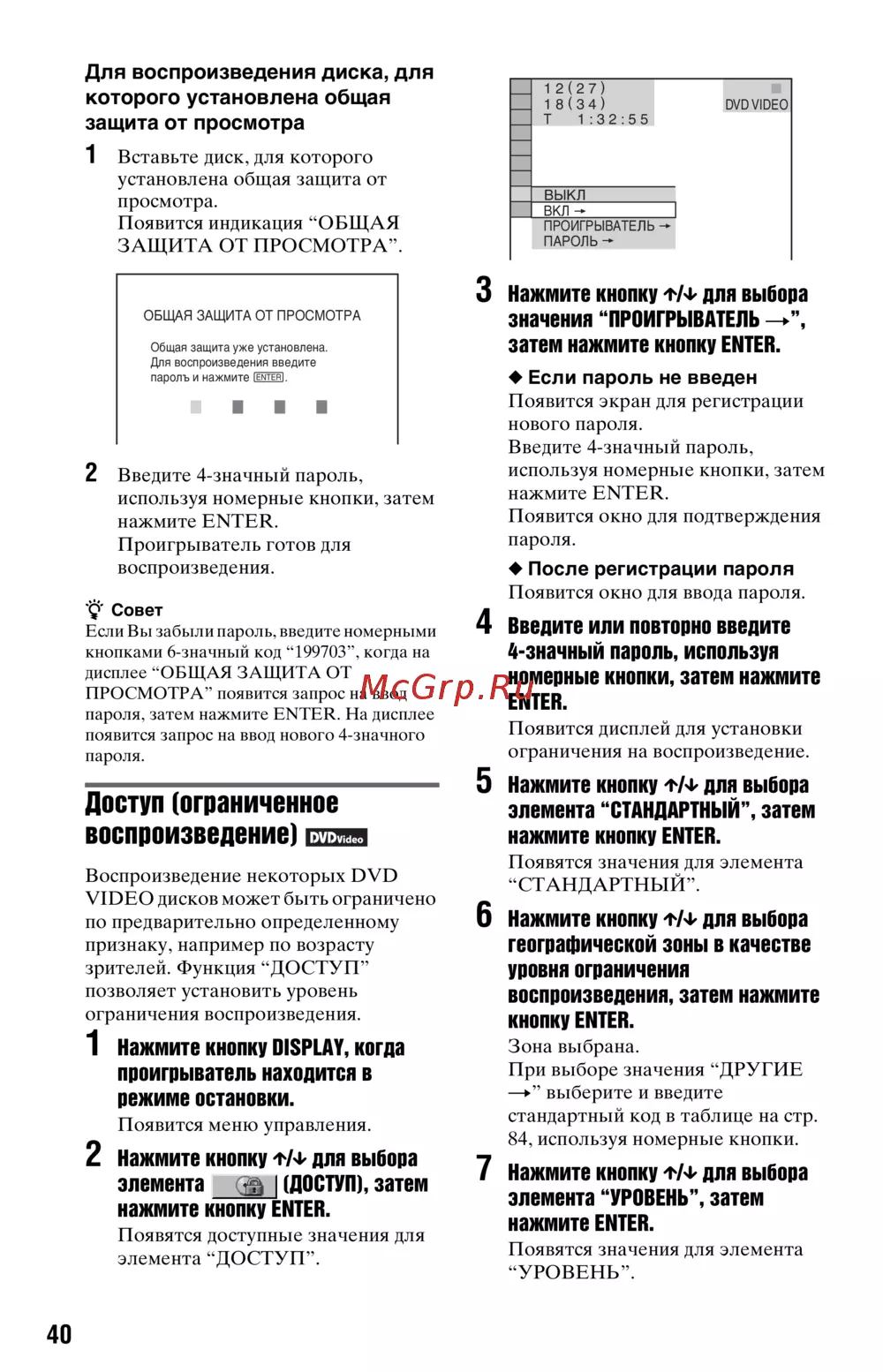 Sony DVP-K68 [40/88] Доступ ограниченное воспроизведение