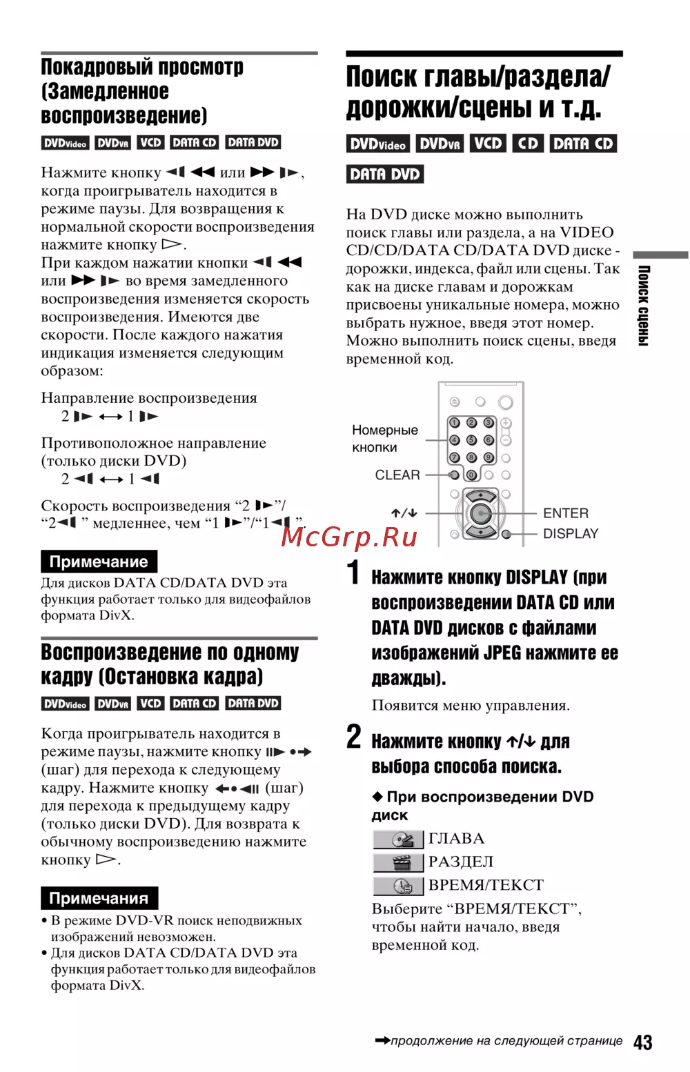 Sony DVP-K68 [43/88] Покадровый просмотр замедленное воспроизведение