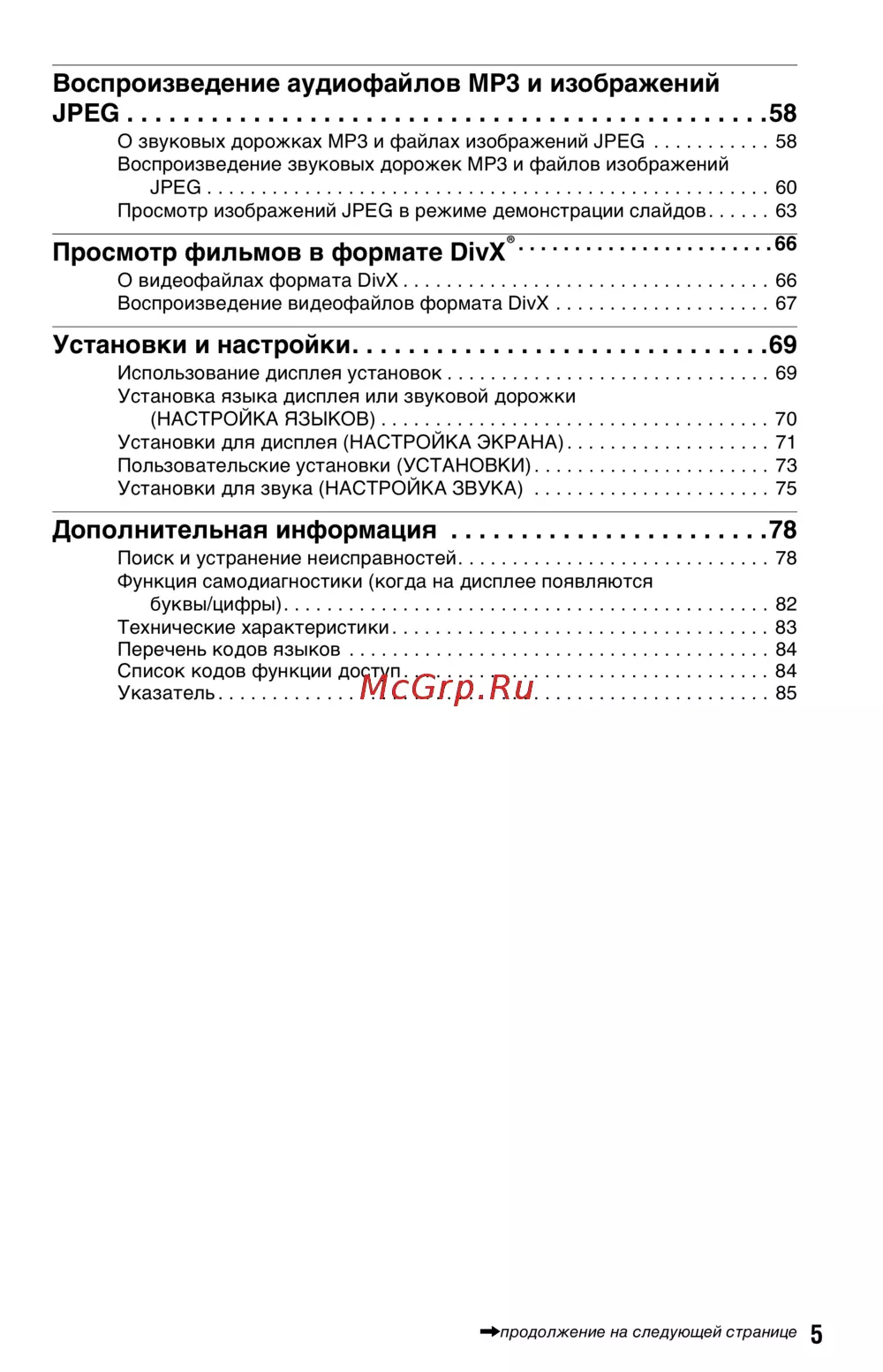 О видеофайлах формата DivX . . . . . . . . . . . . . . . . . . . . . . . . . . . . . . . . . . 66