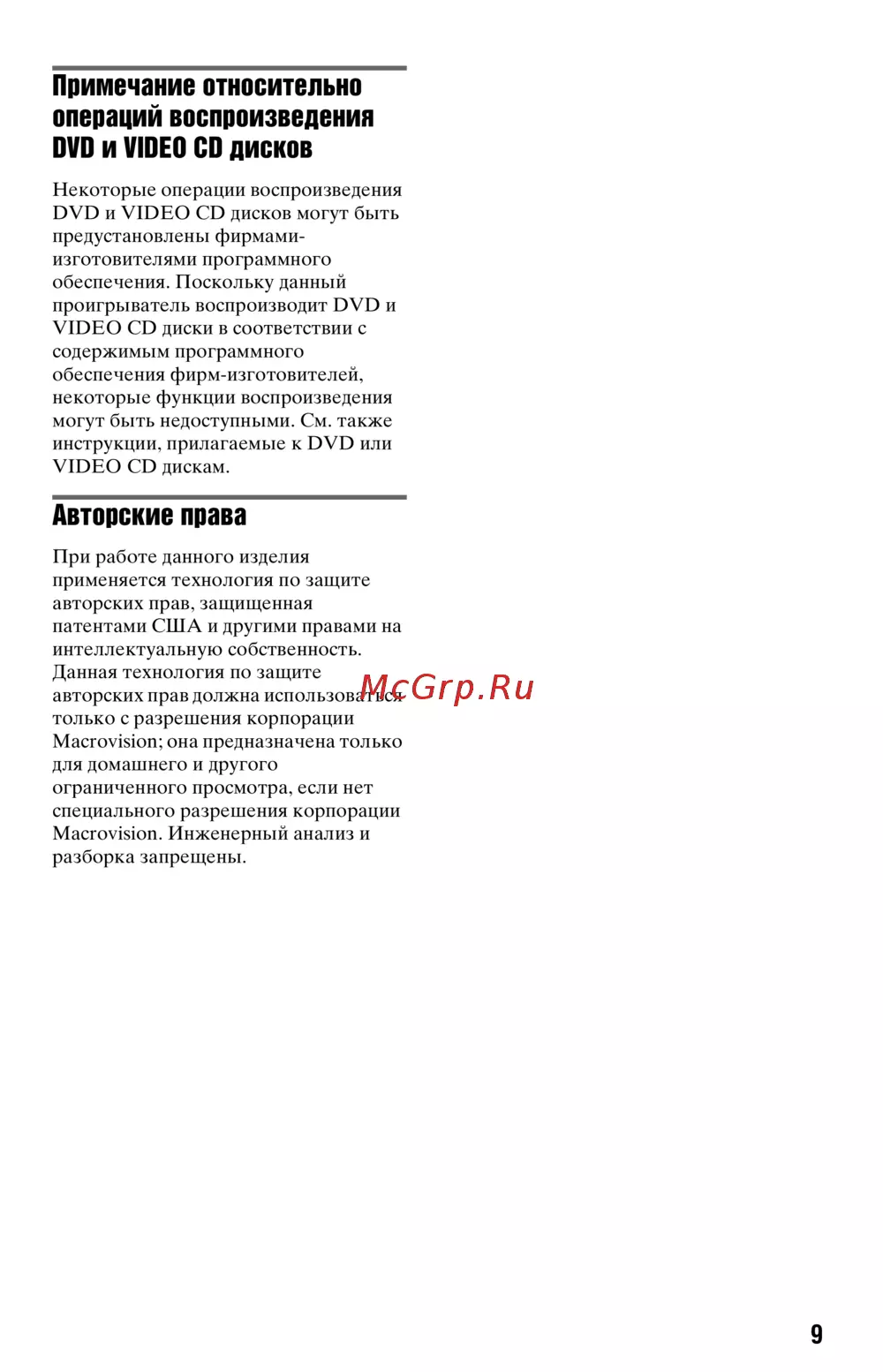 - Примечание относительно операций воспроизведения dvd и video cd дисков p.9