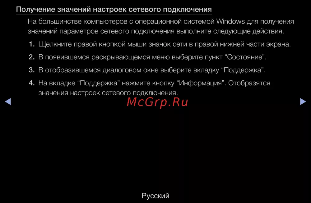 Samsung UE46D7000LS — как получить значения настроек сетевого подключения в Windows [107/339]