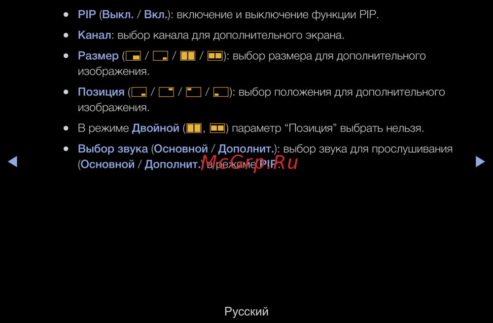 PIP (Выкл. / Вкл.): включение и выключение функции PIP.