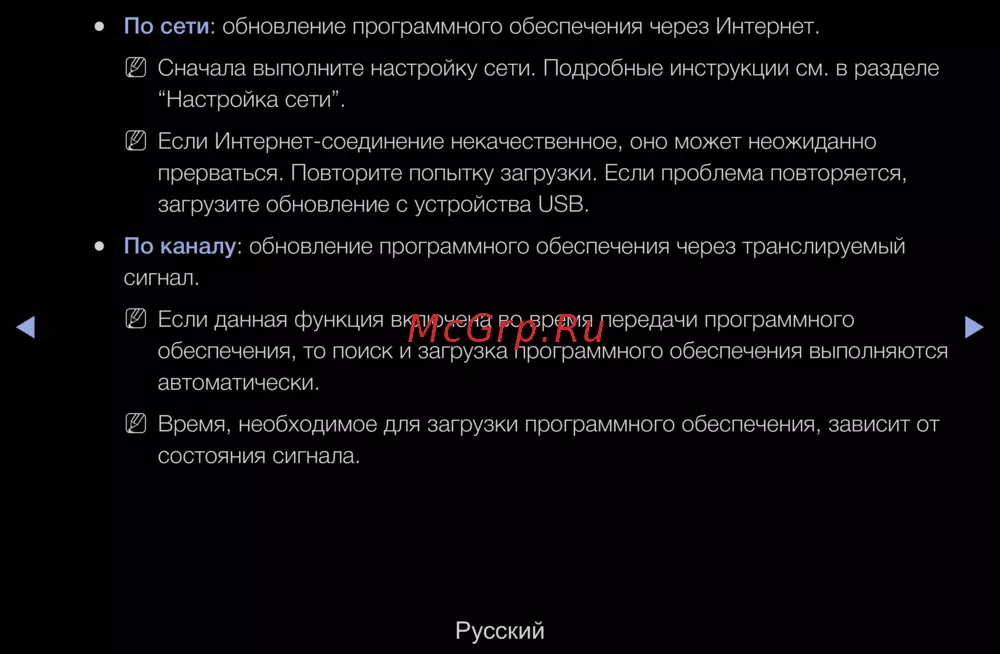 - Оптимальные условия использования телевизора достигаются путем обновления микропрограммы с веб узла samsung com поддержка загрузки через usb p.316