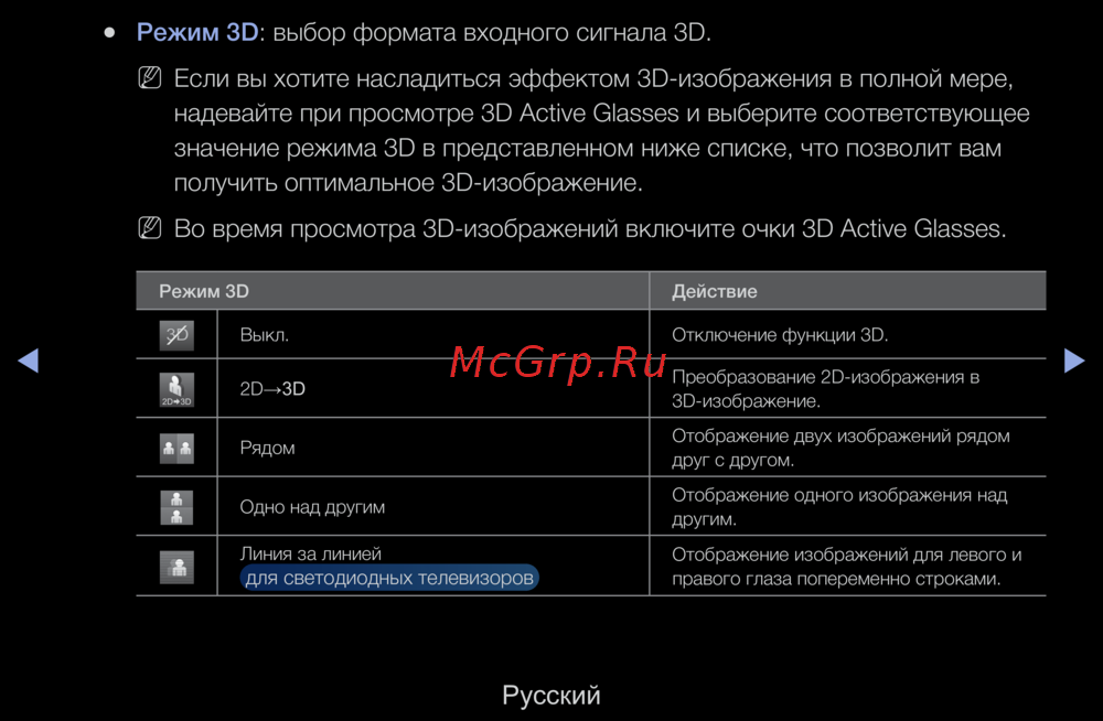надевайте при просмотре 3D Active Glasses и выберите соответствующее