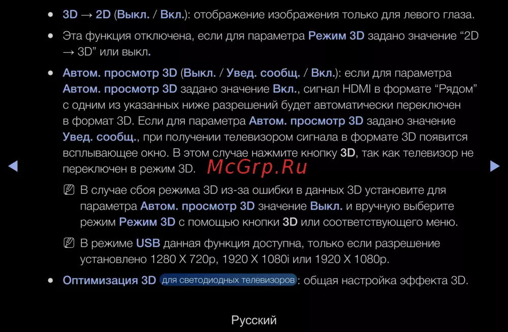 режим Режим 3D с помощью кнопки 3D или соответствующего меню.