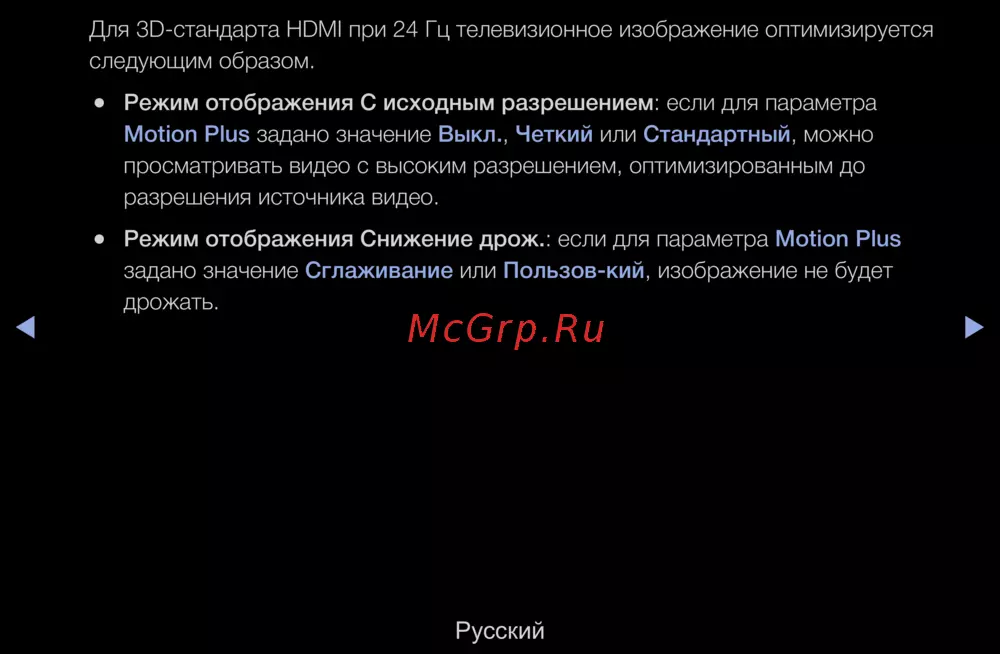 Для 3D-стандарта HDMI при 24 Гц телевизионное изображение оптимизируется