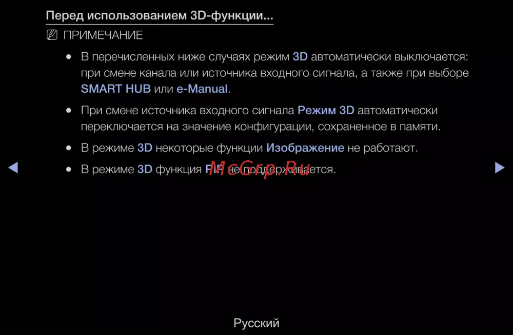 В перечисленных ниже случаях режим 3D автоматически выключается: