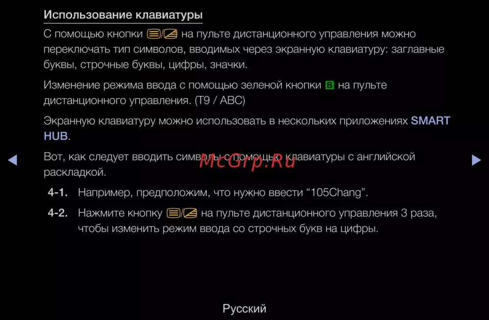 Узнайте, как переключать режимы ввода на экранной клавиатуре с помощью пульта дистанционного управления. Вводите заглавные и строчные буквы, цифры и значки легко.