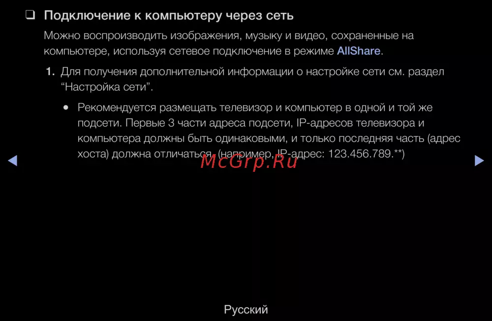 подсети. Первые 3 части адреса подсети, IP-адресов телевизора и