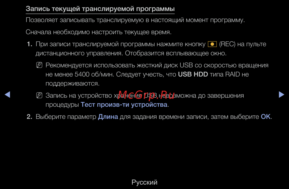 Рекомендуется использовать жесткий диск USB со скоростью вращения