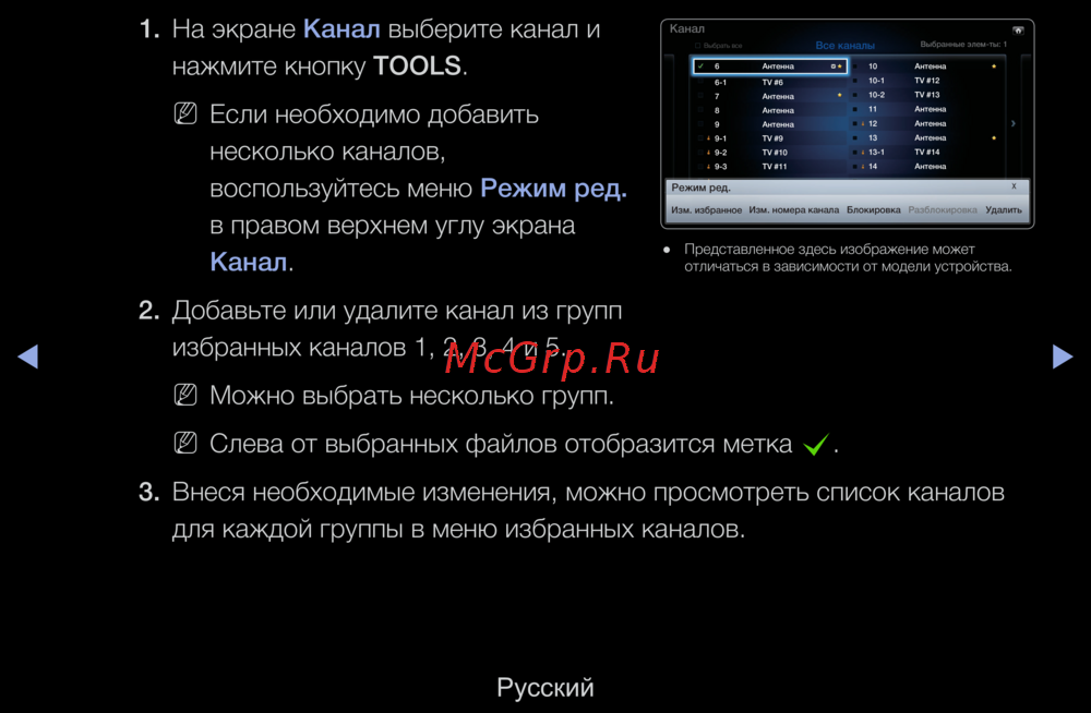 - Внеся необходимые изменения можно просмотреть список каналов для каждой группы в меню избранных каналов p.25
