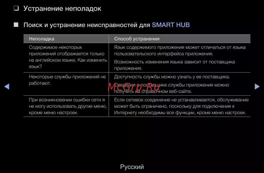 - При возникновении вопросов связанных с работой телевизора сначала просмотрите следующий список если ни один из перечисленных советов не поможет устранить неисправность посетите веб узел www samsung com и выберите пункт поддержка или обратитесь в операторский центр центр адрес которого указан на задней обложке руководства пользователя p.298