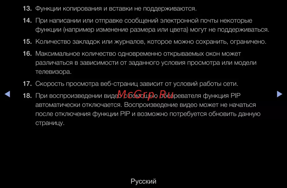 Samsung UE46D7000LS — ограничения функций и возможностей веб-браузеров [292/339]