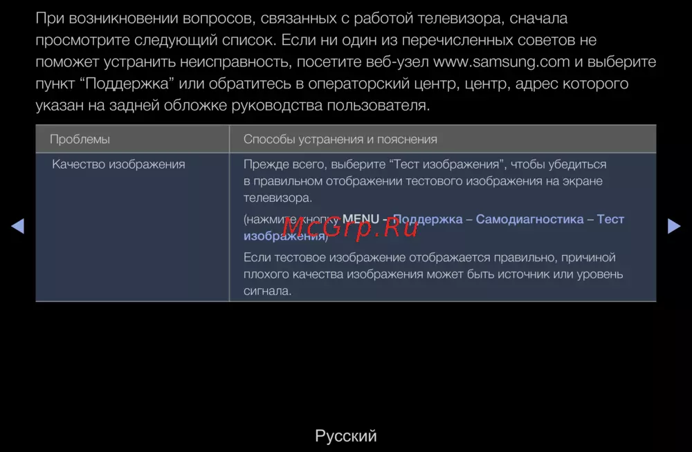 - При возникновении вопросов связанных с работой телевизора сначала просмотрите следующий список если ни один из перечисленных советов не поможет устранить неисправность посетите веб узел www samsung com и выберите пункт поддержка или обратитесь в операторский центр центр адрес которого указан на задней обложке руководства пользователя p.298