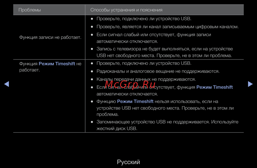 Если сигнал слабый или отсутствует, функция Режим Timeshift