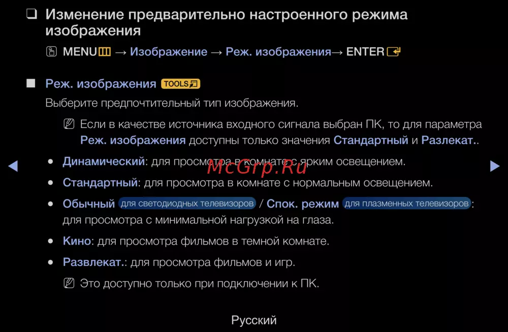 - Оптимальные условия использования телевизора достигаются путем обновления микропрограммы с веб узла samsung com поддержка загрузки через usb p.316