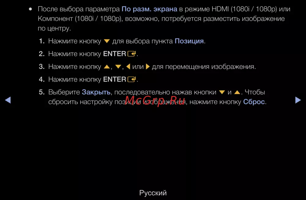 После выбора параметра По разм. экрана в режиме HDMI (1080i / 1080p) или