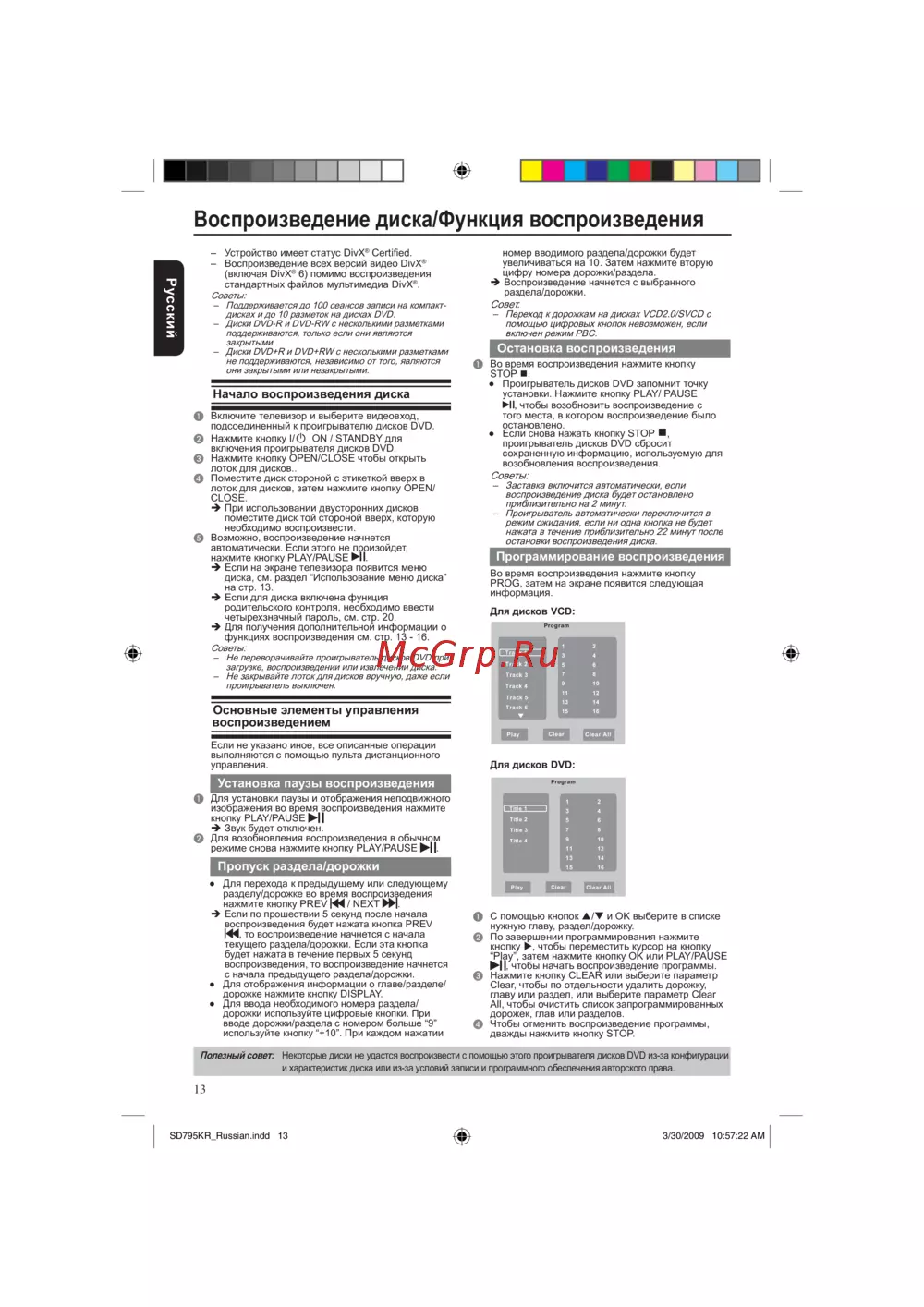 - Полезный совет описанные здесь функции возможно не будут работать для некоторых дисков всегда сверяйтесь с инструкциями прилагаемыми к дискам p.17