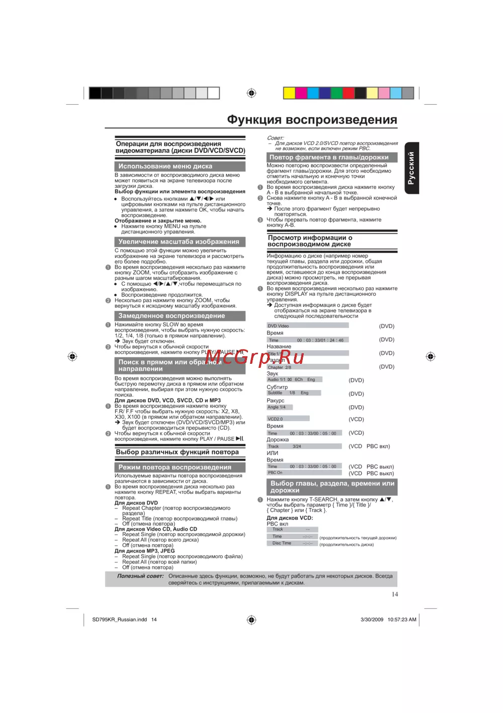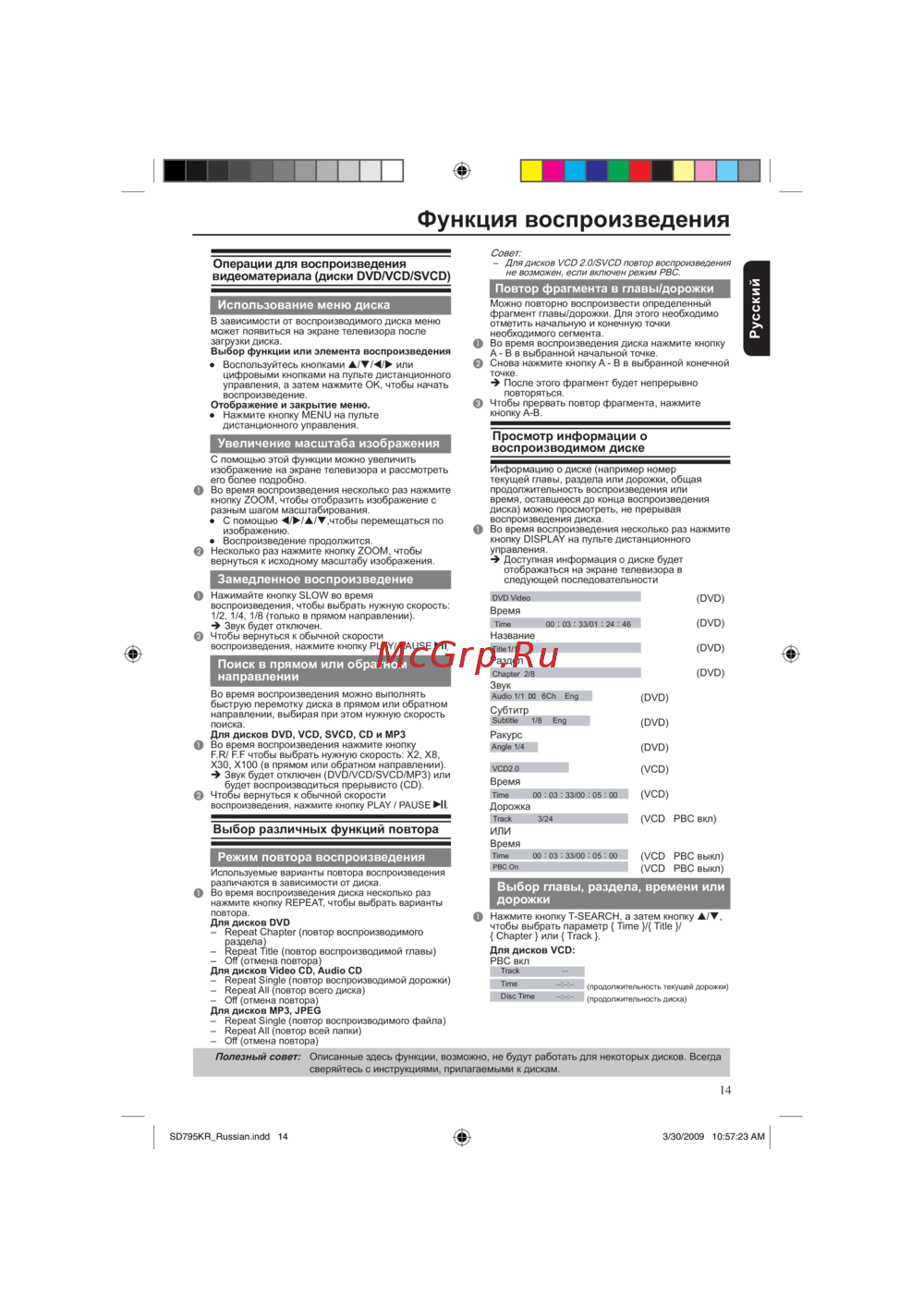 - Полезный совет описанные здесь функции возможно не будут работать для некоторых дисков всегда сверяйтесь с инструкциями прилагаемыми к дискам p.17
