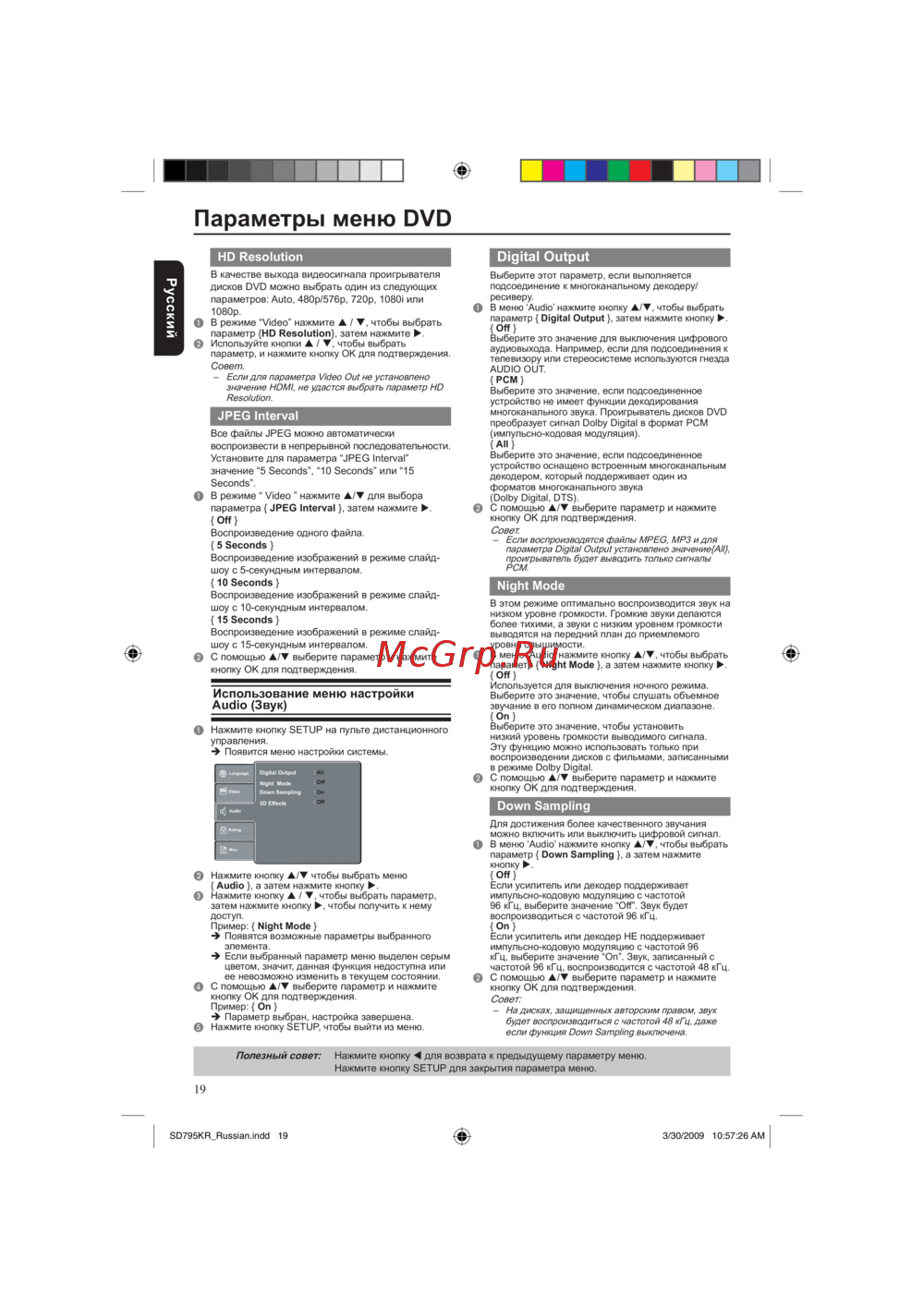 - Полезный совет описанные здесь функции возможно не будут работать для некоторых дисков всегда сверяйтесь с инструкциями прилагаемыми к дискам p.17