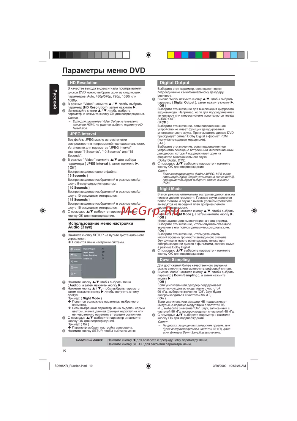 - Выберите параметр и нажмите кнопку ok для подтверждения совет эта функция эффективна только при воспроизведении дисков dvd video с аудиопотоком в формате dolby digital 5 p.21