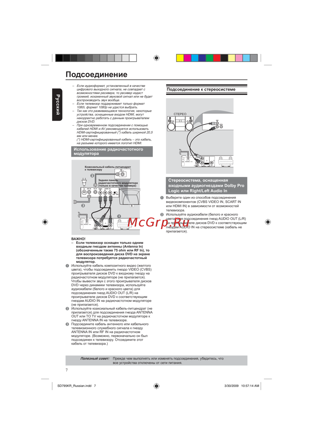 - Проигрыватель дисков dvd выходы и прилагаемые принадлежности p.23