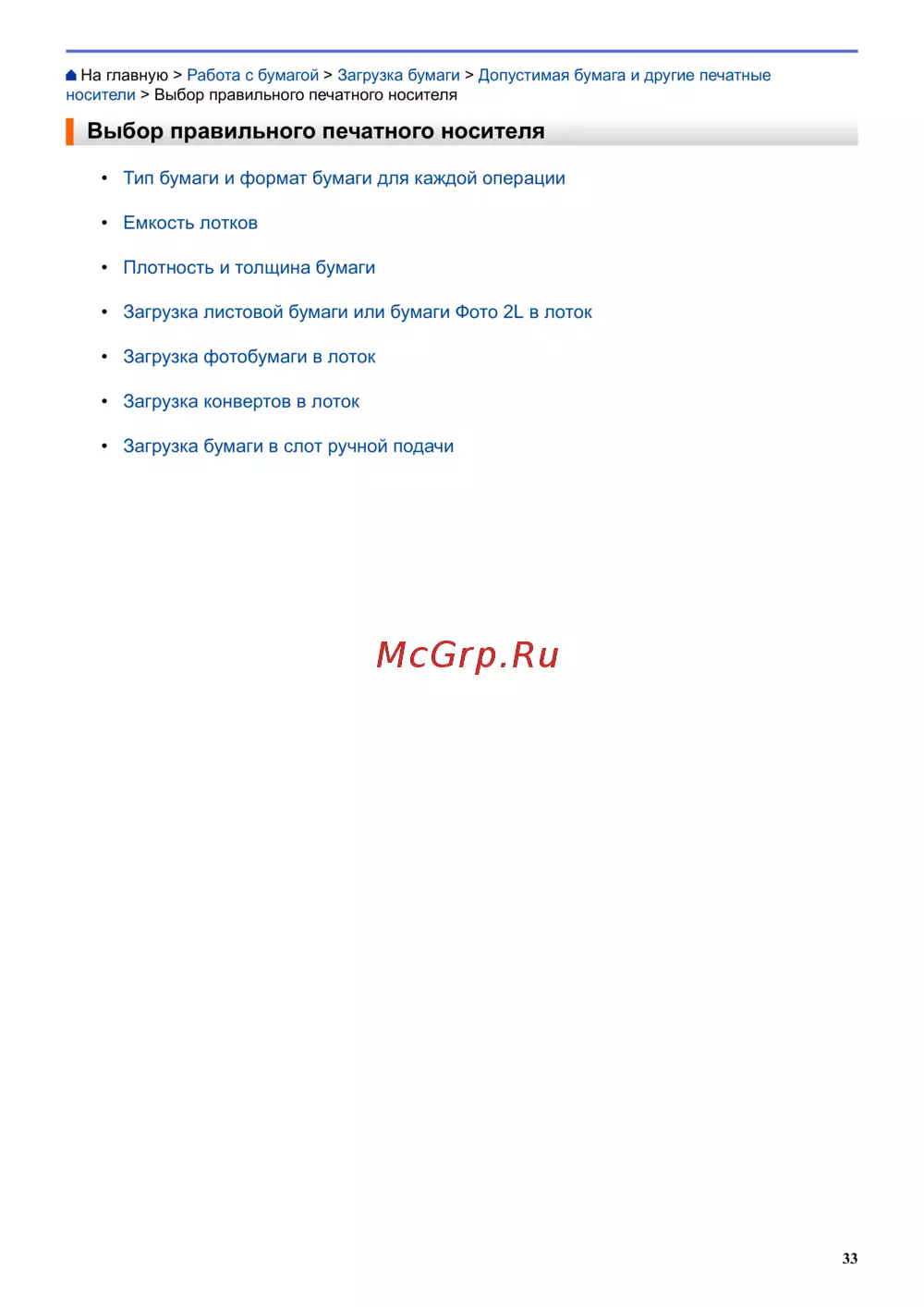 На главную > Работа с бумагой > Загрузка бумаги > Допустимая бумага и другие печатные