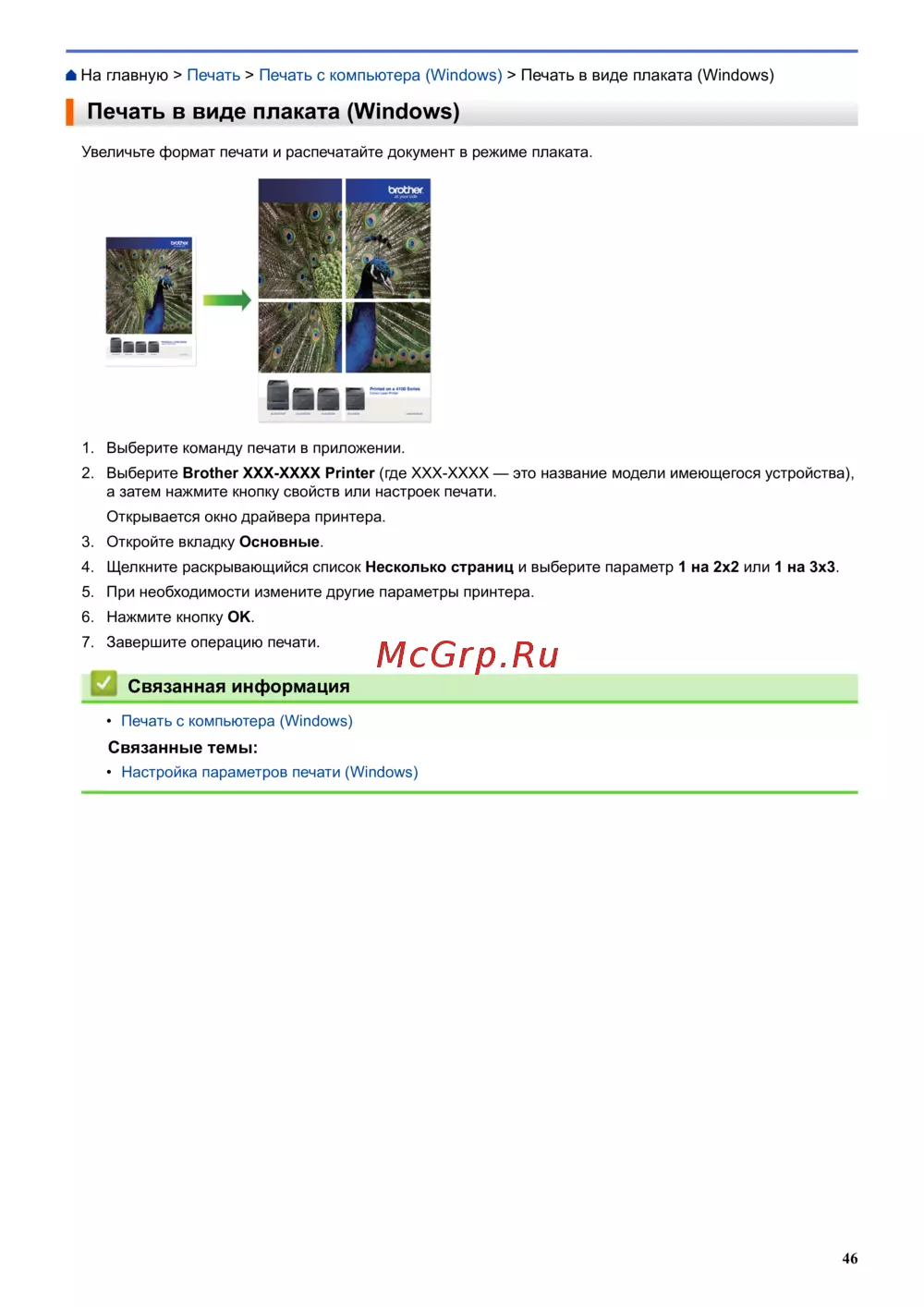 На главную > Печать > Печать с компьютера (Windows) > Печать в виде плаката (Windows)