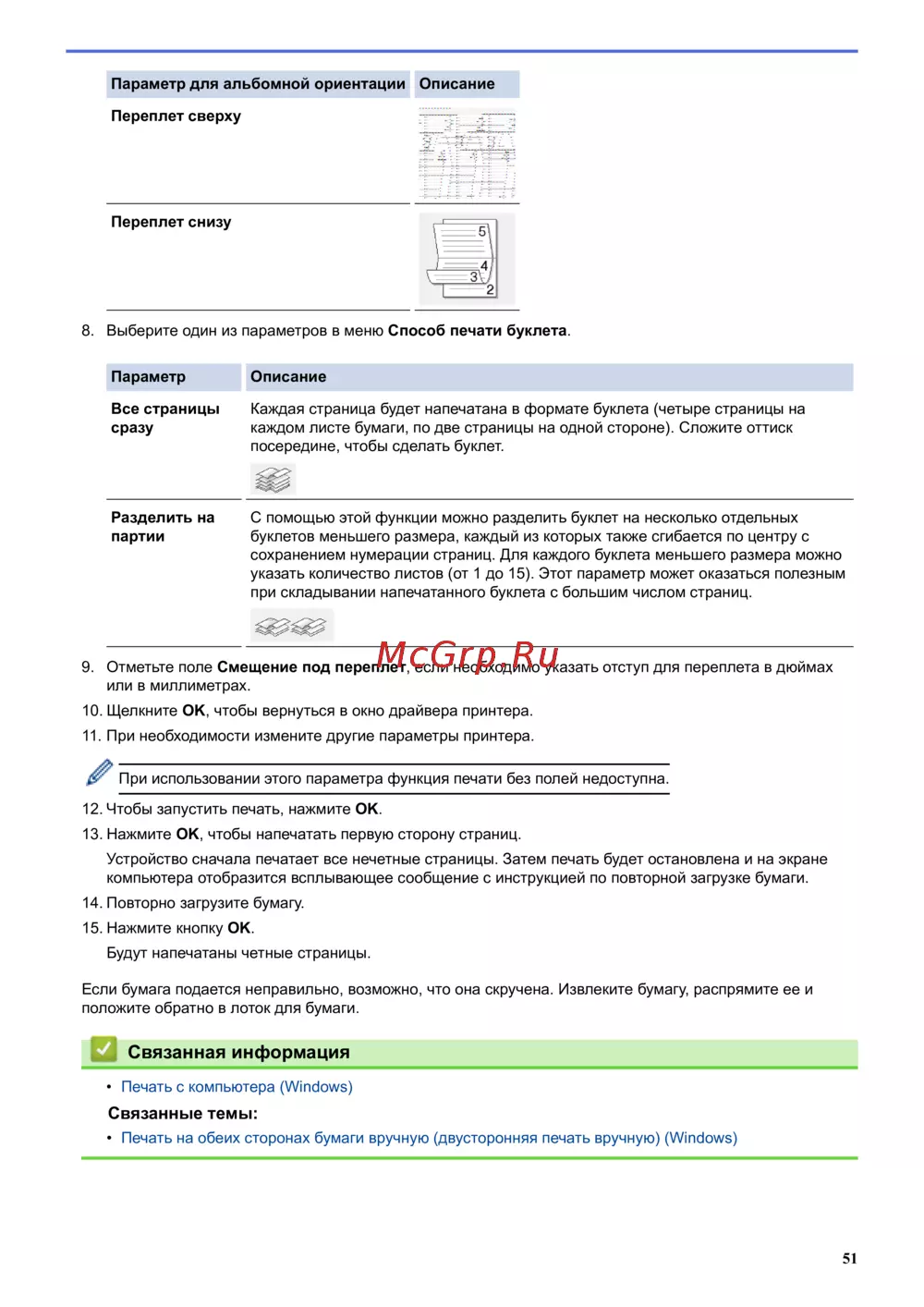• Печать на обеих сторонах бумаги вручную (двусторонняя печать вручную) (Windows)