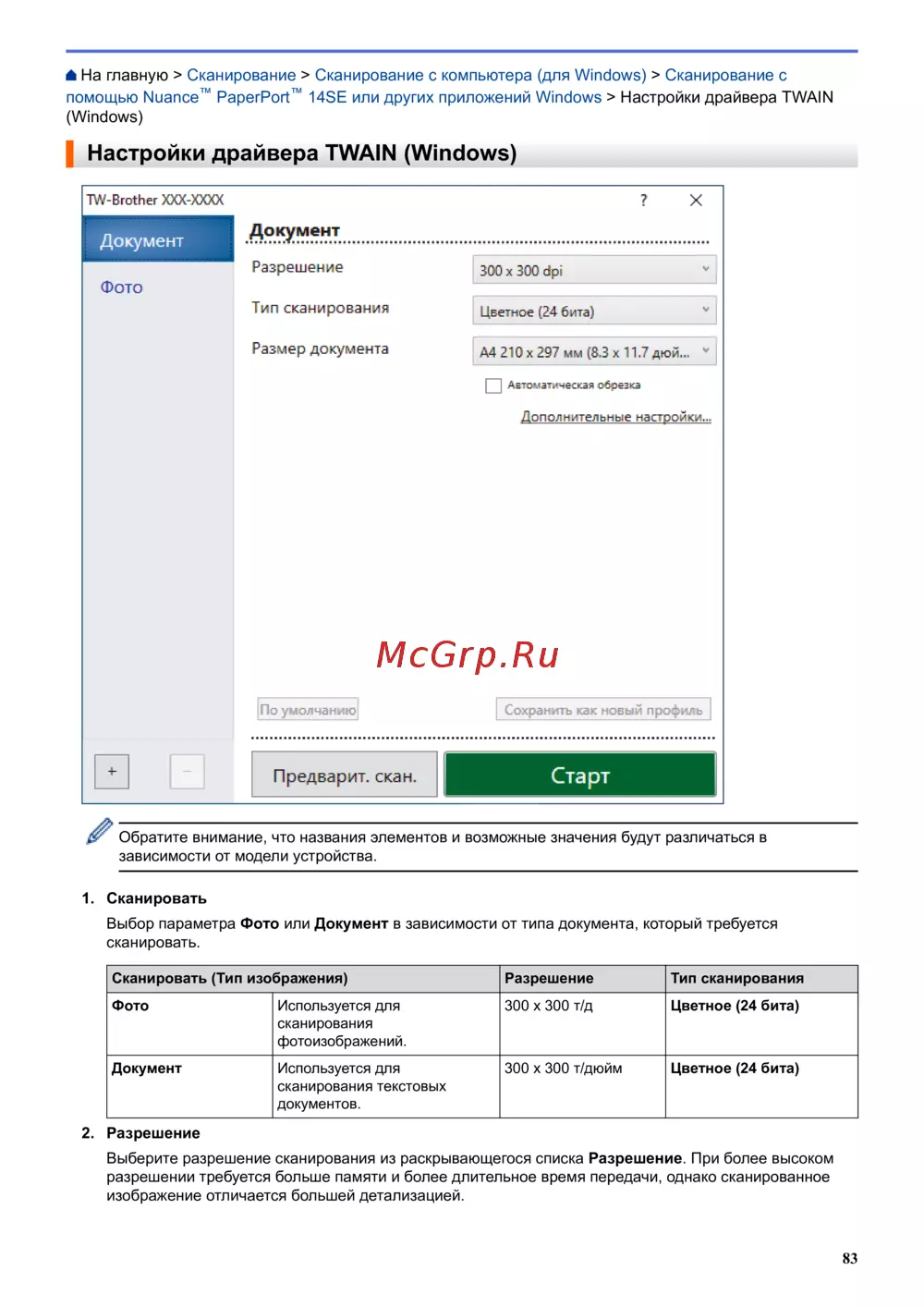 14SE или других приложений Windows > Настройки драйвера TWAIN