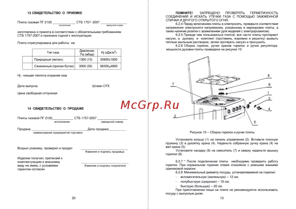 Плита газовая ПГ 2100 _____________ СТБ 1757- 2007 _______________
