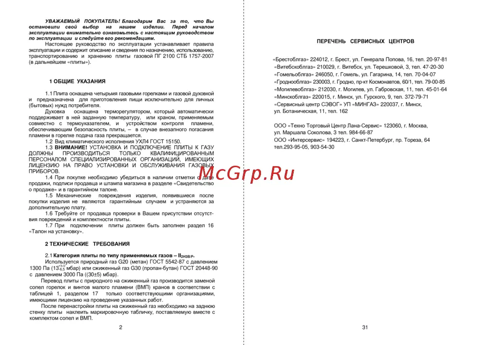 мбар) или сжиженный газ G30 (пропан-бутан) ГОСТ 20448-90