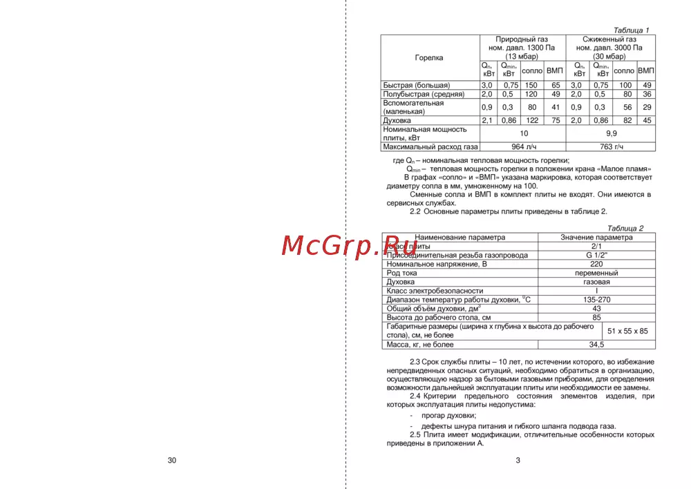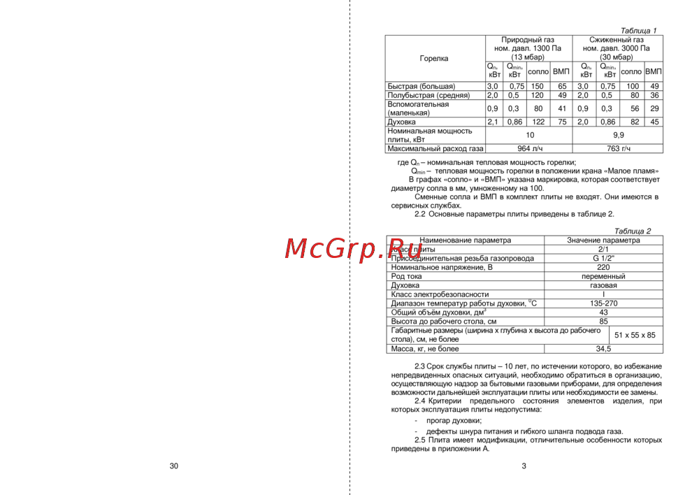 2.3 Срок службы плиты – 10 лет, по истечении которого, во избежание