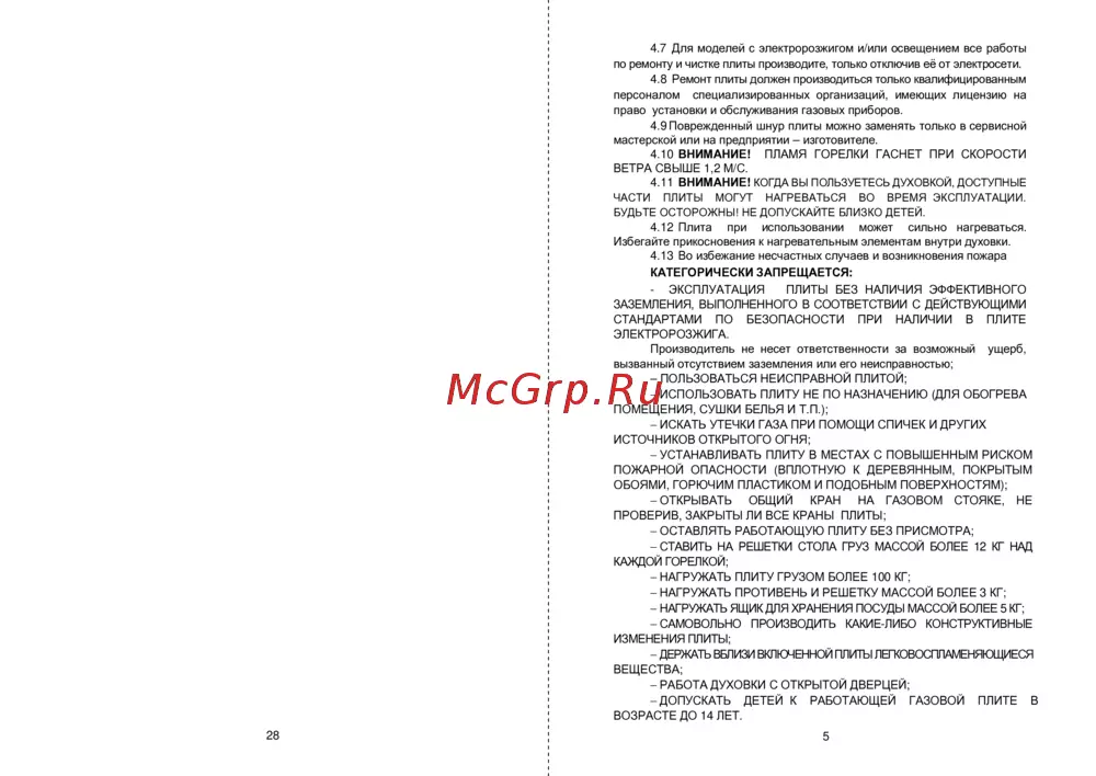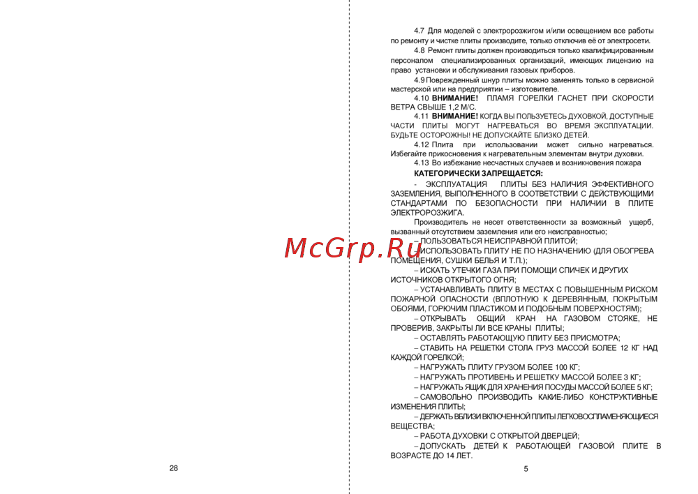 4.13 Во избежание несчастных случаев и возникновения пожара