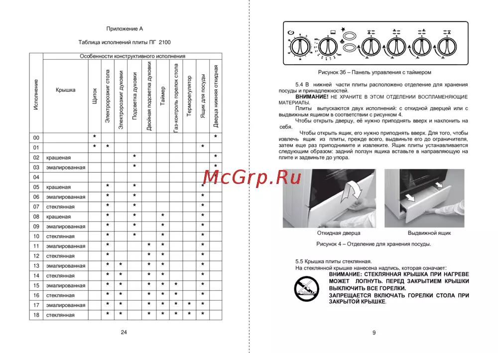 ВНИМАНИЕ: СТЕКЛЯННАЯ КРЫШКА ПРИ НАГРЕВЕ