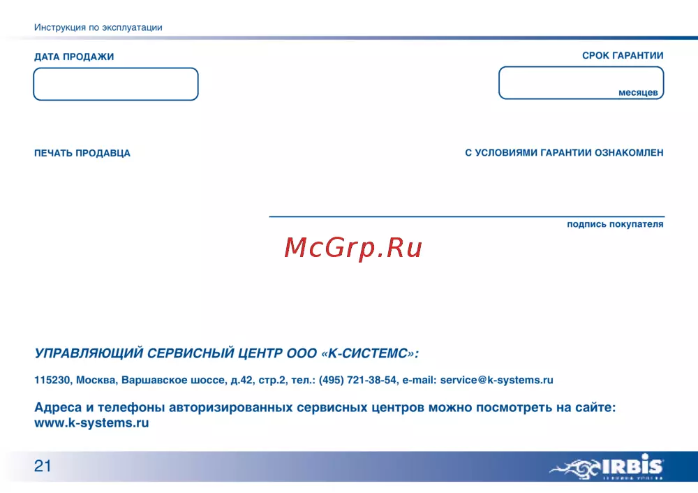 - Адреса и телефоны авторизированных сервисных центров можно посмотреть на сайте www k systems ru p.23
