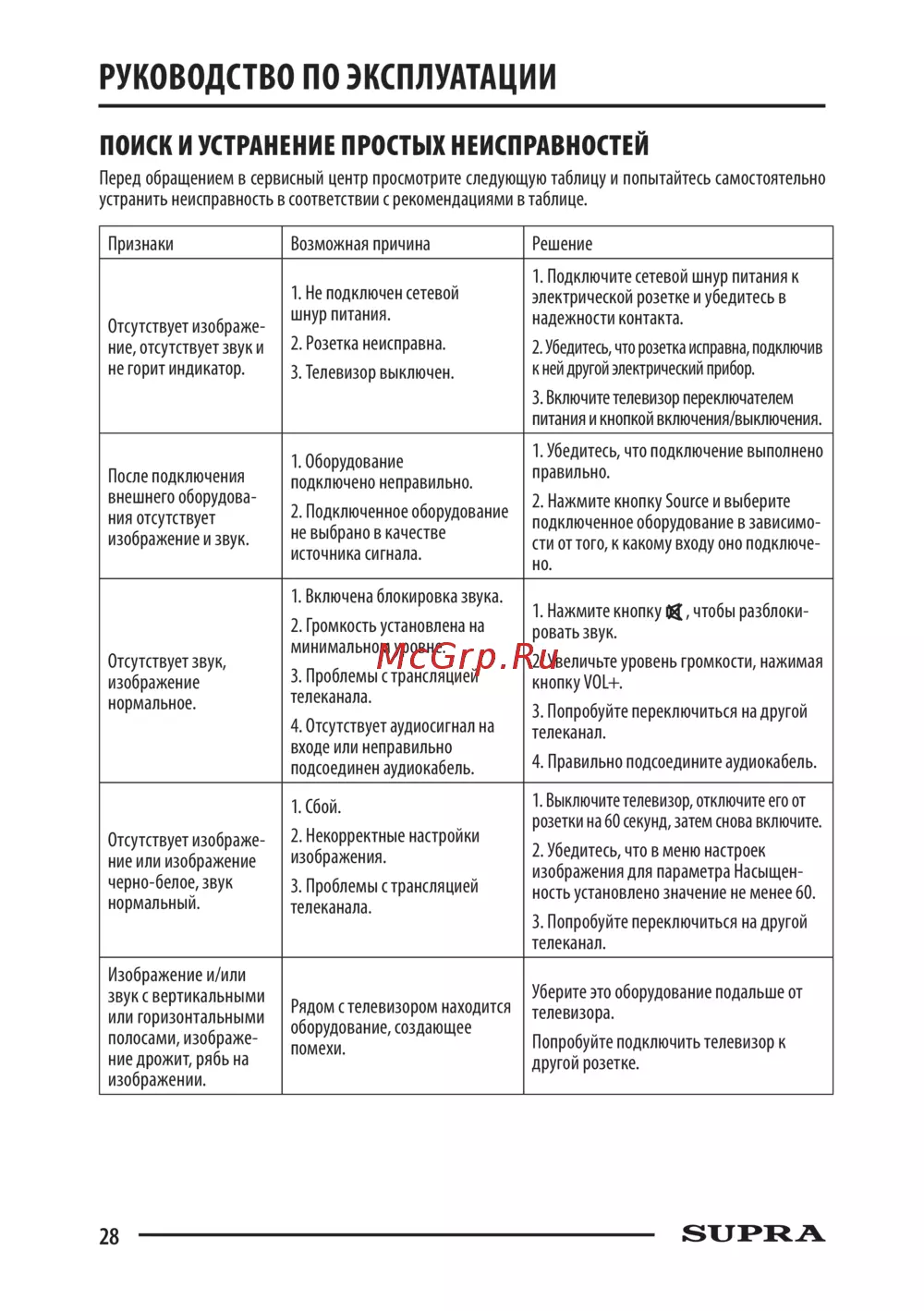 - Благодарим вас за выбор продукции выпускаемой под торговой маркой supra мы рады предложить вам изделия разработанные и изготовленные в соответствии с высокими требова ниями к качеству функциональности и дизайну мы уверены что вы будете довольны приобретением изделия от нашей фирмы внимательно изучите данное руководство по эксплуатации перед началом эксплуатации телевизора все положения данного руководства должны быть прочитаны и поняты позаботьтесь о сохранности настоя щего руководства используйте его в качестве справочного материала при дальнейшем использовании прибора p.2