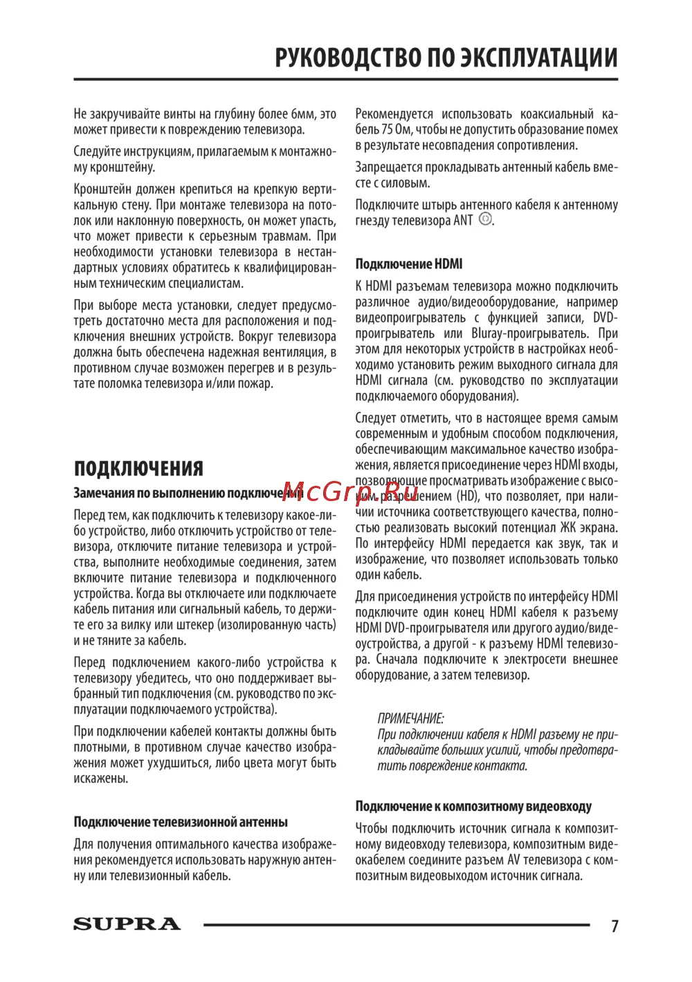 Supra STV-LC50ST0070UИнструкция по эксплуатации -