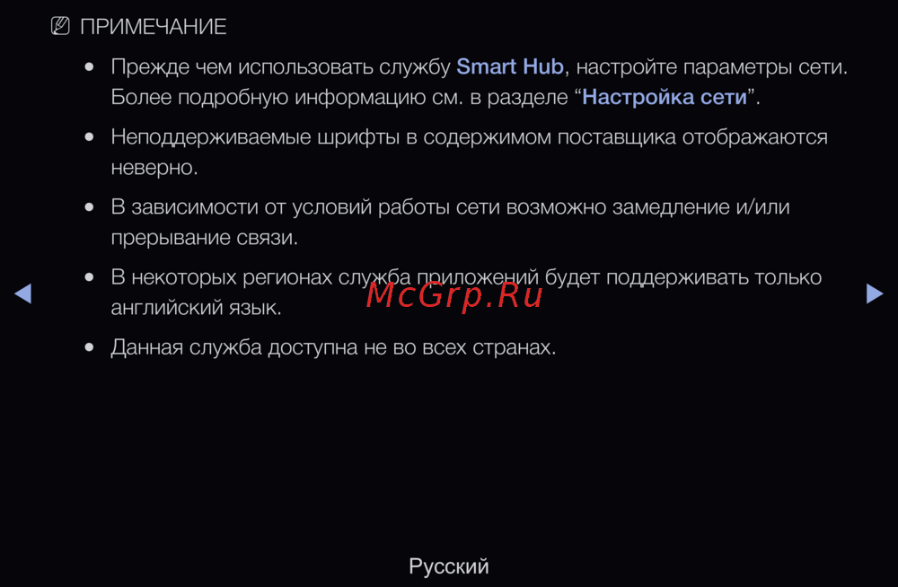 Прежде чем использовать службу Smart Hub, настройте параметры сети.