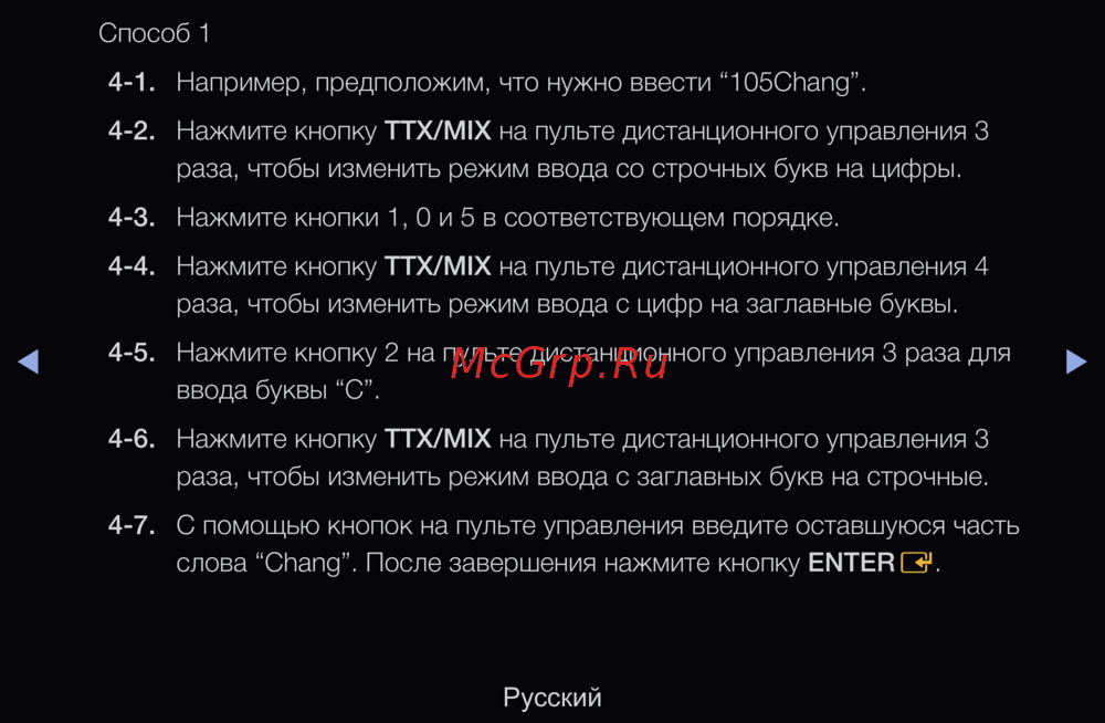 4-4. Нажмите кнопку TTX/MIX на пульте дистанционного управления 4