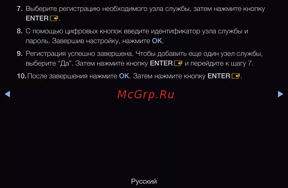 8. С помощью цифровых кнопок введите идентификатор узла службы и