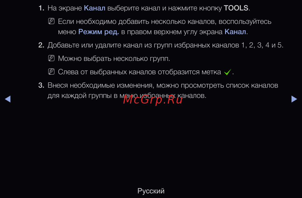 2. Добавьте или удалите канал из групп избранных каналов 1, 2, 3, 4 и 5.