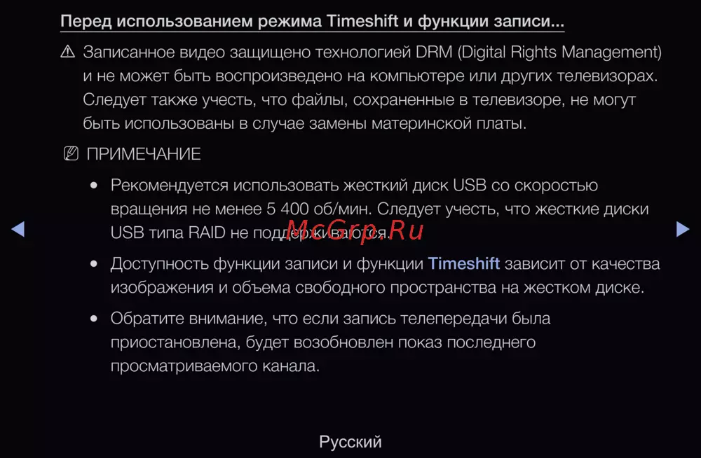 Samsung UE46D6530WS — рекомендации по использованию режима записи и Timeshift [240/318]