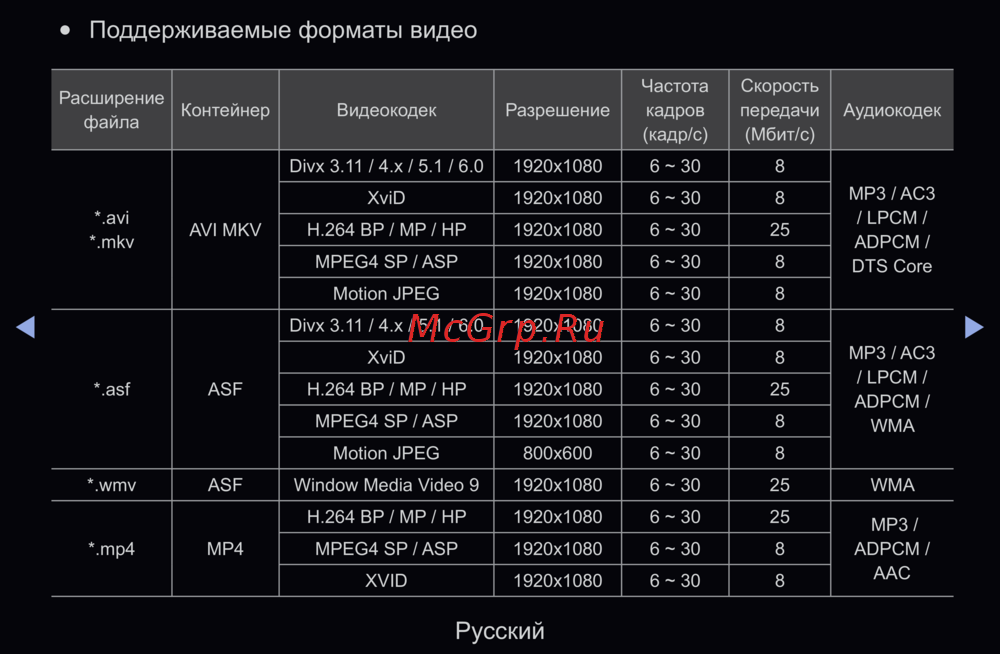MPEG4 SP / ASP 1920x1080 6 ~ 30 8