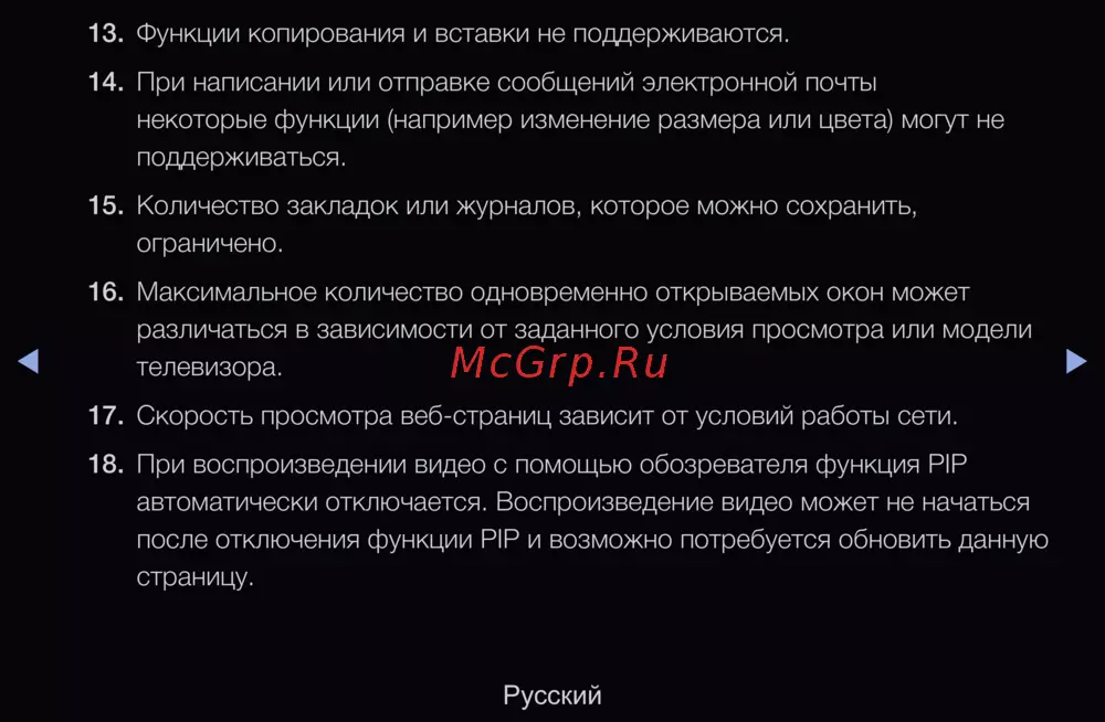 Samsung UE46D6530WS — ограничения и функции веб-браузеров для мультимедиа [276/318]
