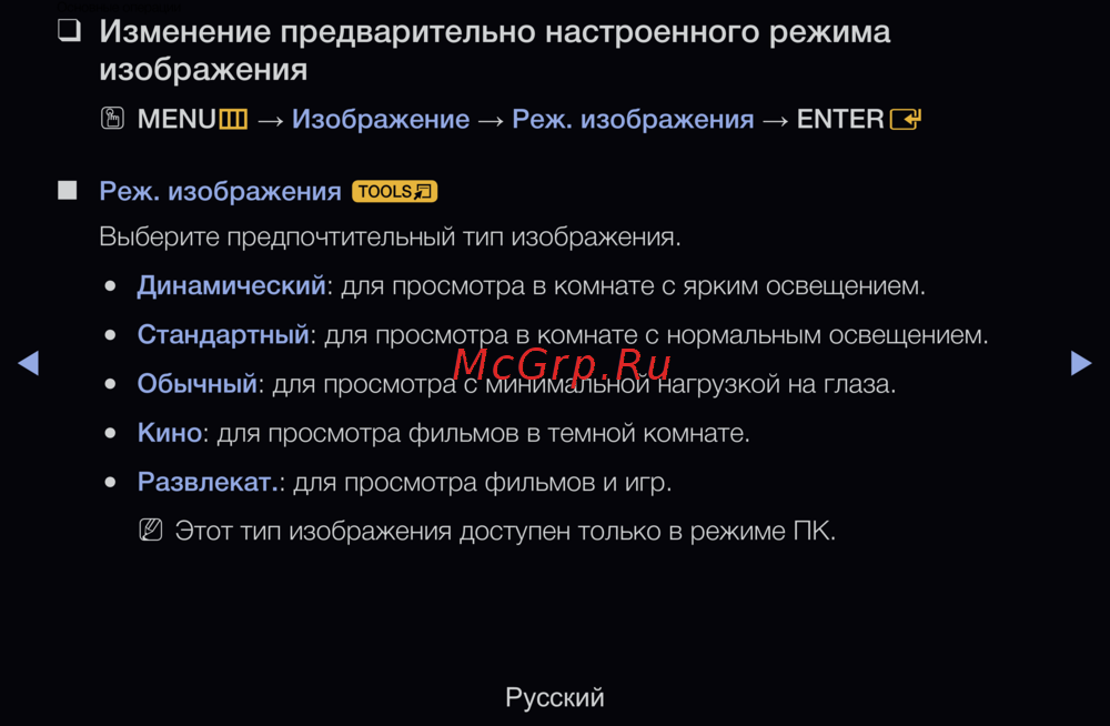 Samsung UE46D6530WS [55/318] Изменение предварительно настроенного режима изображения