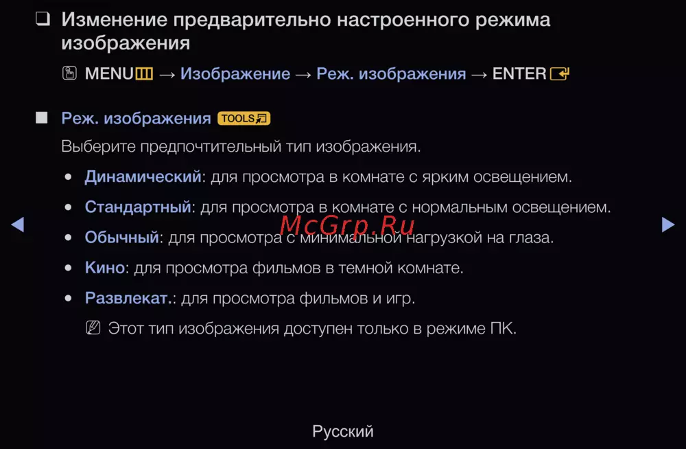 Стандартный: для просмотра в комнате с нормальным освещением.