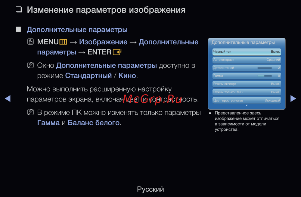 - Представленное меню может отличаться в зависимости от модели устройства p.313