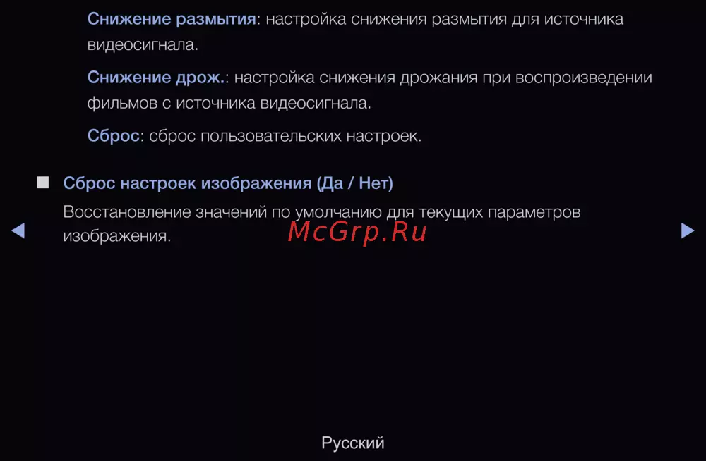 Сброс настроек изображения (Да / Нет)