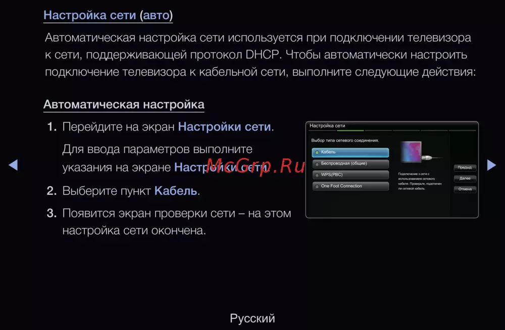 к сети, поддерживающей протокол DHCP. Чтобы автоматически настроить
